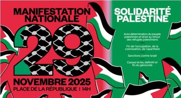 Le 29 novembre, toutes et tous à Paris pour la Palestine !